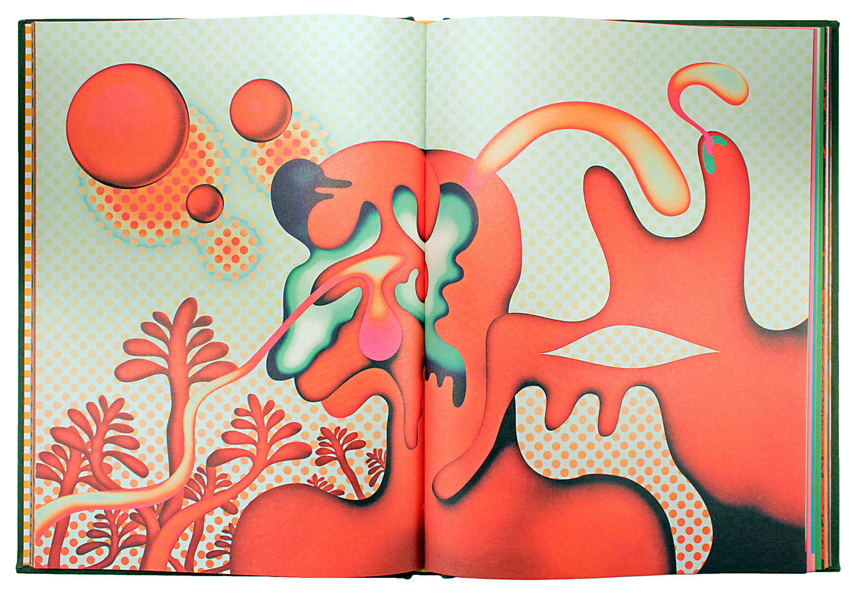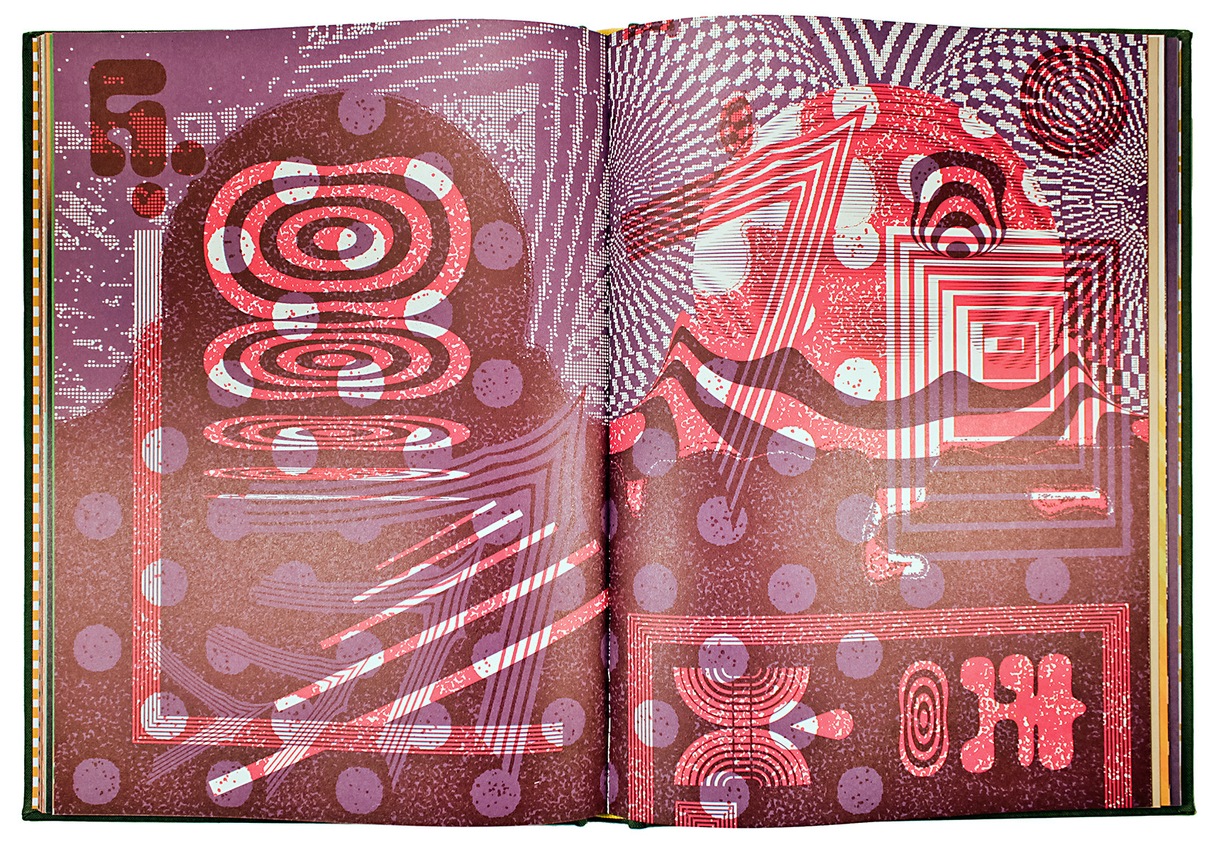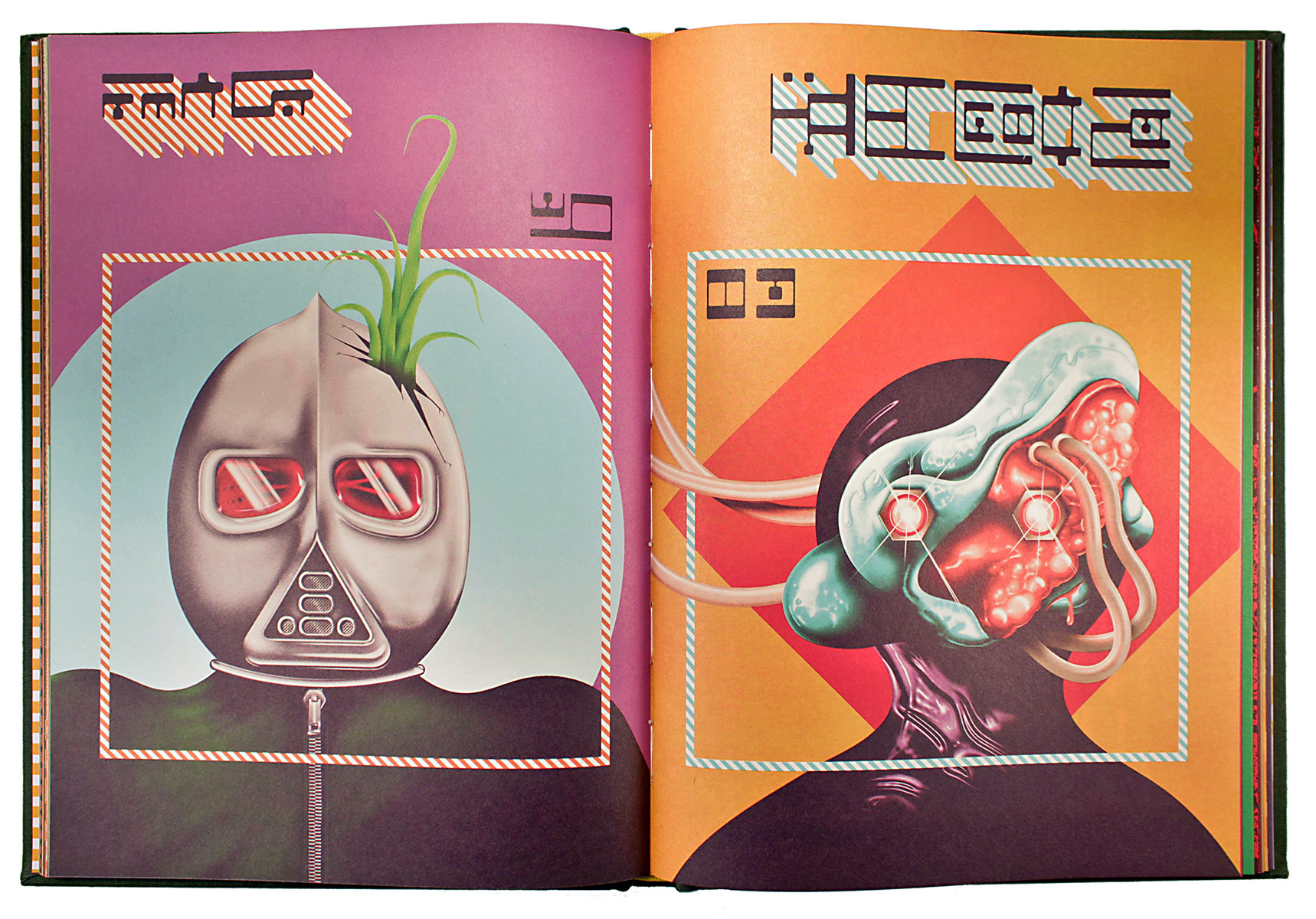 Created alongside a vast body of album cover and illustration work over the span of several years, Robert Beatty’s Floodgate Companion presents a parallel reality of unpublished artwork recalling the heyday of paperback science fiction, experimental animation, and outsider private-press psychedelic records. A cosmic and immersive artifact, Floodgate Companion is a gateway into a familiar yet alien world of imagined sci-fi novels and unheard music, shifting stylistically through airbrushed grotesques, abstract comics, and psychedelic op-art collages framed in asemic type.